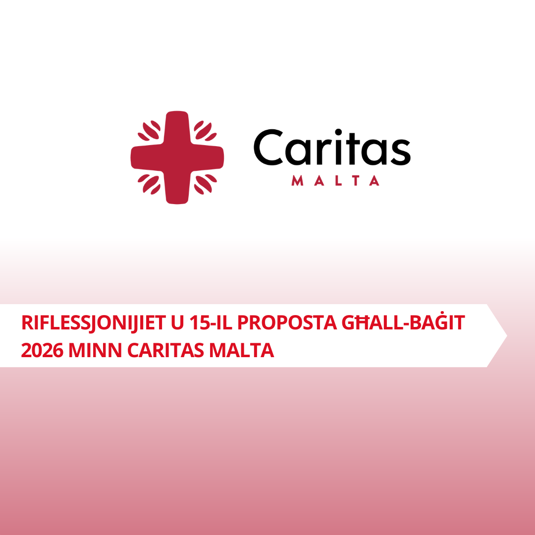 Riflessjonijiet u 15-il Proposta għall-Baġit 2026 Dawn ir-riflessjonijiet huma mnebbħa: Mill-missjoni ta’ Caritas Malta favur Ġustizzja Soċjali, Eradikazzjoni tal-Faqar u Żvilupp Sħiħ tal-Bniedem Mill-valuri marbutin mad-dinjità ta’ kull bniedem; is-solidarjetà; is-sussidarjetà (empowerment) u l-ġid komuni Minn għażla preferenzjali lejn il-fqir b’viżjoni ekonomika li tpoġġi l-bniedem u l-ambjent fiċ-ċentru Mill-kuntatt ta’ kuljum li għandha Caritas Malta ma’ persuni li huma fost …